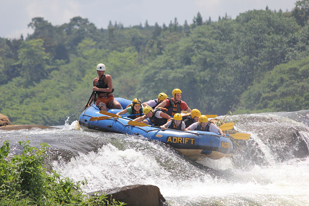 - L’aventure attend. La ville de Jinja (à environ 4 heures de route d’Entebbe), est la capitale de l’aventure du pays et l’endroit idéal pour faire le plein d’adrénaline. En une journée, nous avons fait une combinaison d’un saut à l’élastique du matin, directement au-dessus de la rivière, puis nous sommes allés faire du rafting en eau vive sur les rapides de cinquième année le long du Nil, ne sautant qu’une fois ! Pendant que nos nerfs étaient à fond, les deux activités ont été menées de façon extrêmement professionnelle avec des instructeurs bien entraînés. La ville elle-même se trouve dans un cadre magnifique et paisible entouré par la puissante rivière.
