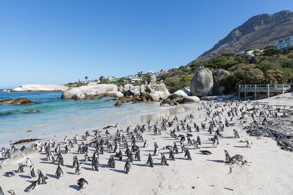 Le cap de Bonne-Espérance est un promontoire rocheux situé sur la côte atlantique de la péninsule du Cap, au sud de la ville du Cap, que vous pourrez atteindre lors d’une belle excursion en voiture pendant vos vacances en Afrique du Sud. C’est l’endroit où les courants des océans Indien et Atlantique se rencontrent. Elle revêt depuis longtemps une importance particulière pour les marins, qui sont nombreux à l’appeler simplement « le Cap ». En route, essayez de vous arrêter à Boulders Beach pour observer la colonie de manchots africains qui a élu domicile sur la plage du centre-ville. Vous pourrez vous approcher de ces oiseaux qui se promènent librement, bien que dans un environnement naturel protégé. Il y a jusqu’à 3000 pingouins ici.