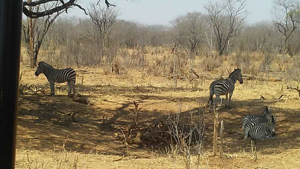 Après une nuit de sommeil berçant et roulant au lit, mais armés d’un copieux petit déjeuner, nous avons fait notre première excursion d’une journée au parc national de Hwange. C’est le plus grand parc national du Zimbabwe – presque de la même taille que la Belgique – qui abrite une grande variété d’espèces sauvages et d’oiseaux. Notre safari a commencé sur les véhicules ouverts, et après avoir franchi les formalités d’entrée du parc, nous nous sommes mis en route pour repérer les « invités de la nature ». Une journée remplie de belles vues, notre aventure s’est poursuivie après notre pause déjeuner au Hwange Safari Lodge.