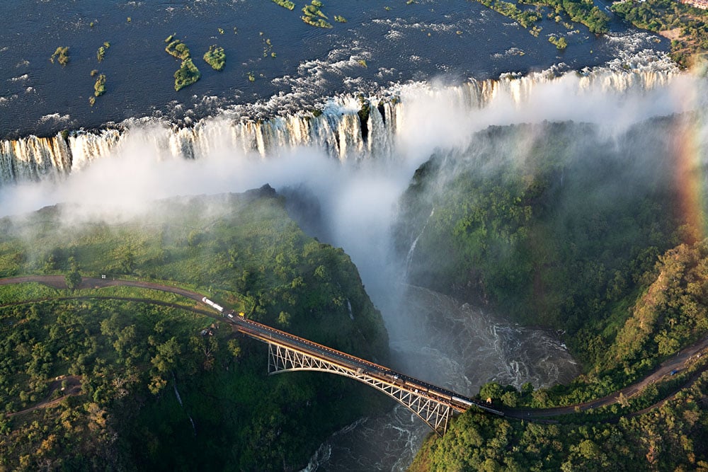 Victoria Falls En Afrique australe, sortez de l’ordinaire et visitez l’un des plus grands spectacles de la Terre, situé à la frontière du Zimbabwe et de la Zambie – Victoria Falls. Préparez-vous à être impressionné par la cascade tonitruante du Zambèze qui se jette dans les gorges de basalte en contrebas. Les chutes Victoria sont l’objet de légendes, et quand vous en verrez la force et la beauté, vous comprendrez pourquoi. Faites une croisière au coucher du soleil sur le Ra-Ikane et revenez à une époque révolue. Laissez-vous tenter par les saveurs et les arômes uniques de la cuisine africaine au cours d’un dîner spécial Boma – une expérience authentique du dîner africain. Approchez-vous des géants d’Afrique dans un safari à dos d’éléphant, où vous explorerez les sentiers de la faune autour des chutes Victoria tout en vous laissant porter par un éléphant. En cours de route, vous découvrirez ces créatures incroyables et retomberez amoureux d’elles.