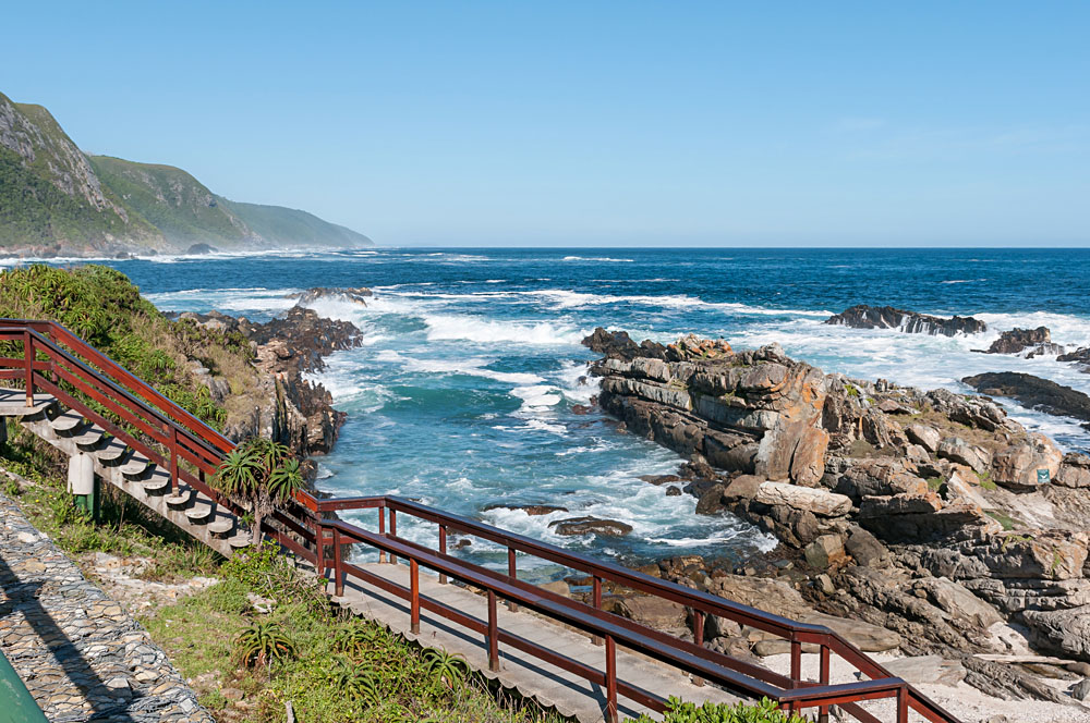 Géographiquement, la Garden Route est située à peu près entre Mossel Bay à l’ouest et Plettenberg Bay à l’est, sur une distance d’environ 300 kilomètres/185 miles. Il y a un grand aéroport dans la ville de George. Qu’allez-vous vivre lors d’une visite ici ? Tout d’abord, je vous suggère de rendre justice aux nombreuses attractions de la Route des Jardins, vous devriez envisager de passer au moins 4 jours ici. La liste des attractions naturelles est assez longue. Elle possède un littoral exceptionnellement pittoresque, d’excellentes plages avec, par endroits, de grandes vagues qui s’abattent sur de hautes falaises, des lacs et des lagunes pittoresques, d’anciennes forêts denses indigènes, des ravins spectaculaires, de profondes gorges et une faune abondante. L’humanité a fourni des terrains de golf de haut niveau, des colonies d’artistes, des sites de saut à l’élastique et des stations balnéaires attrayantes.
