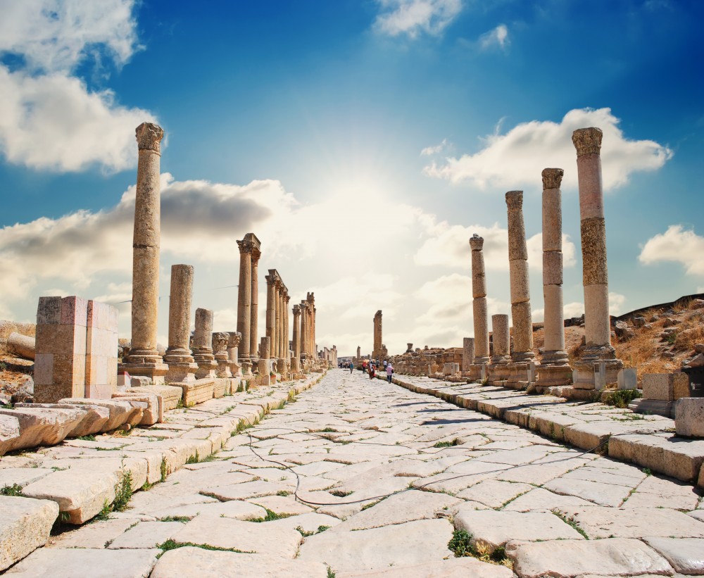 Jerash L’ancienne ville de Jerash abrite l’une des architectures romaines les mieux conservées au monde. Située à 48 kilomètres au nord de la capitale Amman, Jerash était autrefois une ville très riche. Aujourd’hui, une ville moderne débordant d’étals de fruits colorés, traversant les anciennes frontières de la ville de Jerash donne un aperçu étonnant de la vie antique sous le règne d’un empereur.