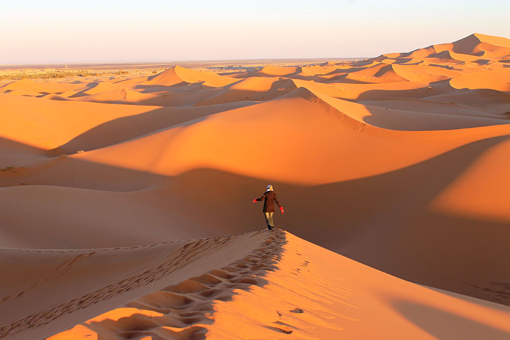 Desert Safari Dans le désert coloré du Sahara, passez la nuit dans une tente de style bédouin sous un ciel étoilé incroyable. Les couleurs du désert s’animent au village de Merzouga, où les spectaculaires dunes sahariennes sont un paradis pour les photographes. Ici, vous pouvez faire un safari à dos de chameau dans les dunes et goûter à la vie berbère isolée (bien qu’un peu influencée par le tourisme). Voyagez en 4×4 jusqu’à votre nuitée dans un campement de luxe dans le désert, pour une expérience inoubliable sous le ciel du désert.