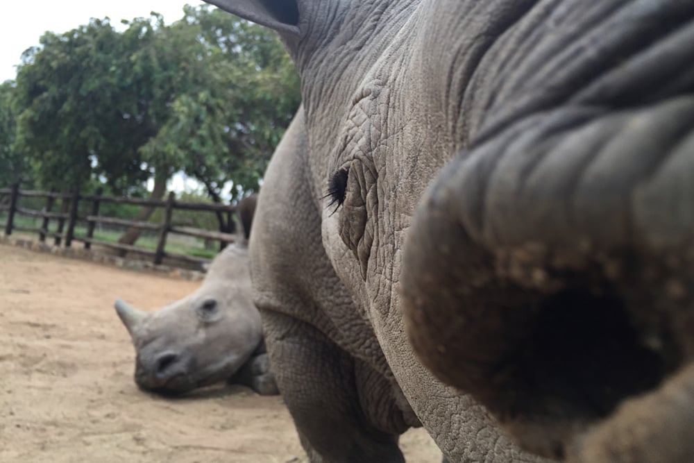 « Le 30 août 2013, lorsqu’une réserve a découvert que des braconniers les avaient frappés et que trois de leurs rhinocéros avaient été abattus et écornés, nous sommes intervenus pour offrir notre expertise et un foyer pour le traitement et la protection des deux rhinocéros femmes qui avaient survécu. Malheureusement, le rhinocéros mâle n’a pas eu autant de chance.