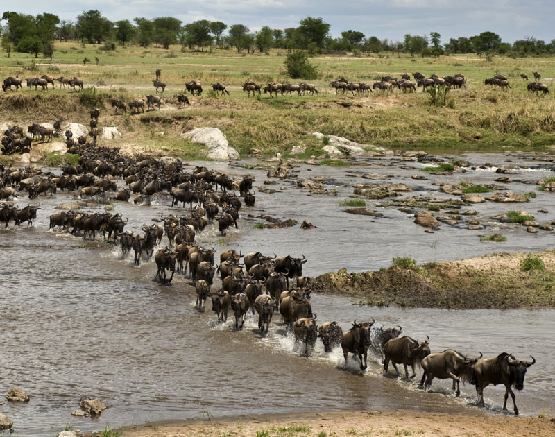 Pendant la migration, des centaines d’animaux debout dans les plaines sont un spectacle à voir et attirent de nombreux prédateurs impressionnants en Afrique. Lions, léopards, hyènes et chiens sauvages suivent les troupeaux et donnent à ceux qui participent à un safari en Afrique une grande chance de voir un meurtre en action. L’un des aspects les plus spectaculaires de la migration est le rassemblement des troupeaux pour traverser le fleuve Grumeti (Tanzanie) et le fleuve Mara (Kenya) de juillet à septembre. Alors que les troupeaux traversent la rivière, les crocodiles attendent les animaux les plus faibles qui se séparent de la meute.