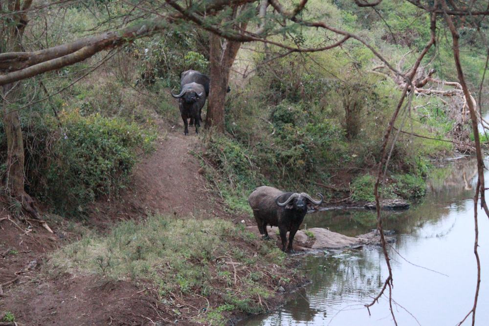 Je partage le trajet avec un couple qui a eu la chance d’apercevoir une girafe en train d’accoucher de son veau. Point numéro un de la liste de contrôle ? Retrouvez la mère et le bébé pour voir comment ils vont ! L’un des grands avantages de la petite taille du parc national de Nairobi est que si les animaux ont encore de la place, il est également relativement facile de suivre leurs mouvements. Notre première grande observation est un troupeau de buffles du Cap, souvent le plus facilement repérable, et dangereux des Big 5. Ces derniers sont plus intéressés par le pâturage que les humains intrusifs cependant, nous regardant juste assez longtemps pour prendre de superbes photos avant que nous ne repartions.