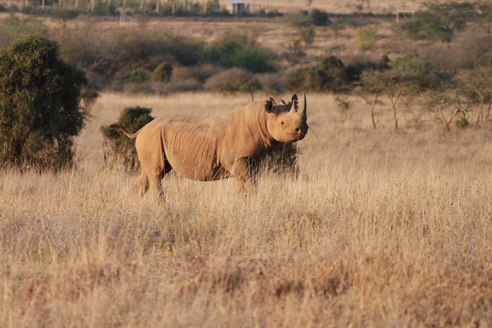 Il nous reste encore une chance dans ce safari au Kenya. Lever tôt pour un dernier safari le lendemain, il ne faut pas attendre longtemps avant de voir un rhinocéros noir solitaire. Travaillant son nerf, cet animal habituellement timide s’approche suffisamment du véhicule pour nous donner son meilleur profil avant qu’il ne soit temps de passer à autre chose. Nous n’avons pas besoin d’aller loin pour trouver une fière famille de trois autruches avec leurs poussins. Il est difficile de dire si le deuxième mâle de l’autruche – facilement identifiable par des couleurs plus audacieuses et plus distinctes que la femelle – est un rival indésirable ou un oncle docile.