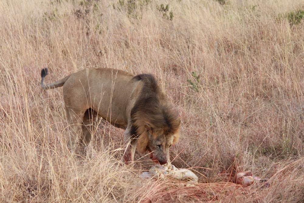 Voir une tuerie sauvage en Afrique est une de ces expériences de safari à double tranchant. C’est sanglant et confrontant, mais en même temps, c’est la façon de faire de la nature ici, et c’est ce que les gens viennent voir. Un peu plus loin, nous tombons sur non pas un, mais quatre lions – deux mâles et deux femelles – qui se partagent le butin d’un zèbre fraîchement tué. C’est un rappel brut que les mignons chatons que nous avons vus jouer dans l’herbe longue quelques minutes auparavant sont des prédateurs naturels, et regarder le carnage est un rappel brutal de notre propre fascination pour le côté le plus impitoyable de la nature.